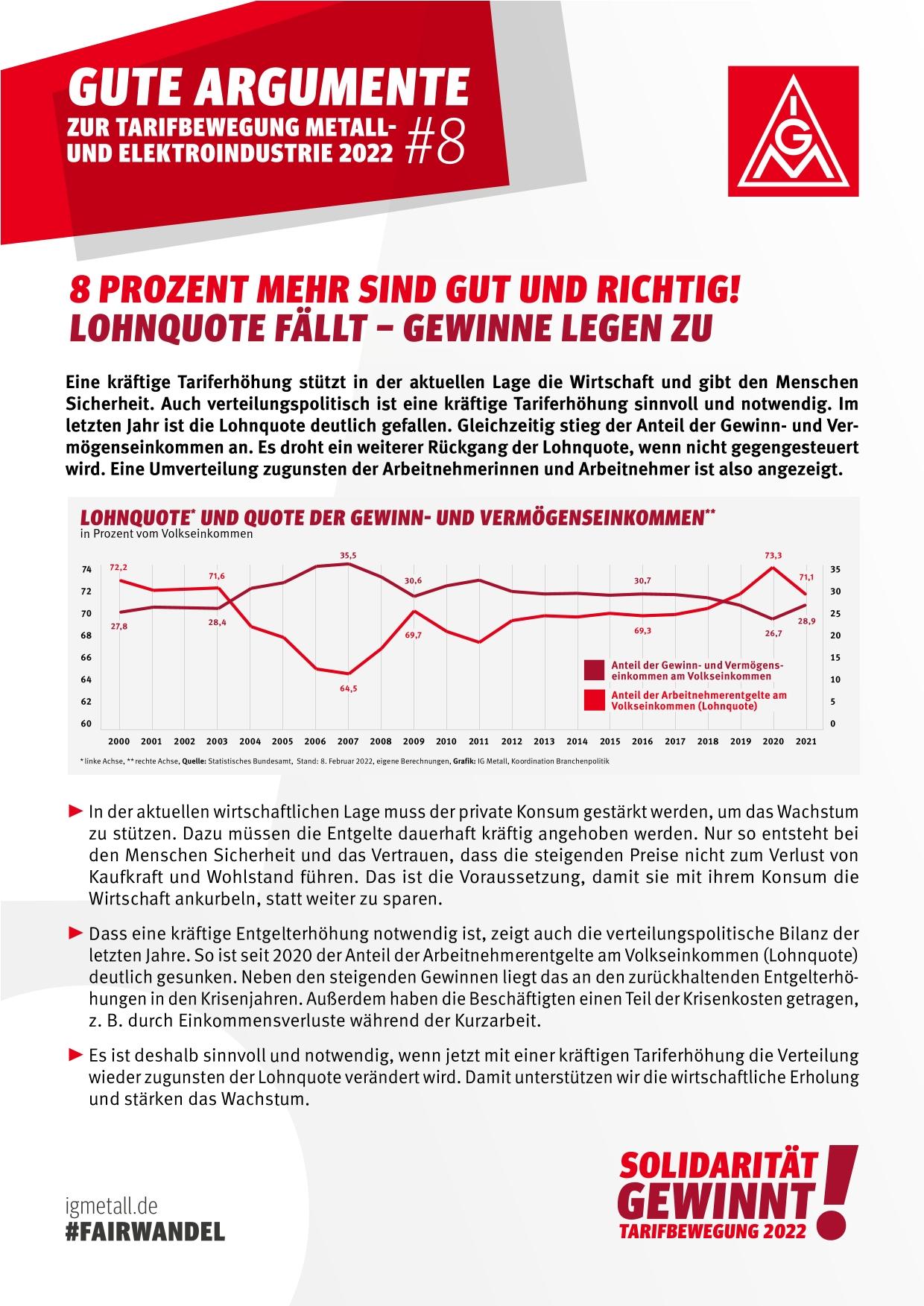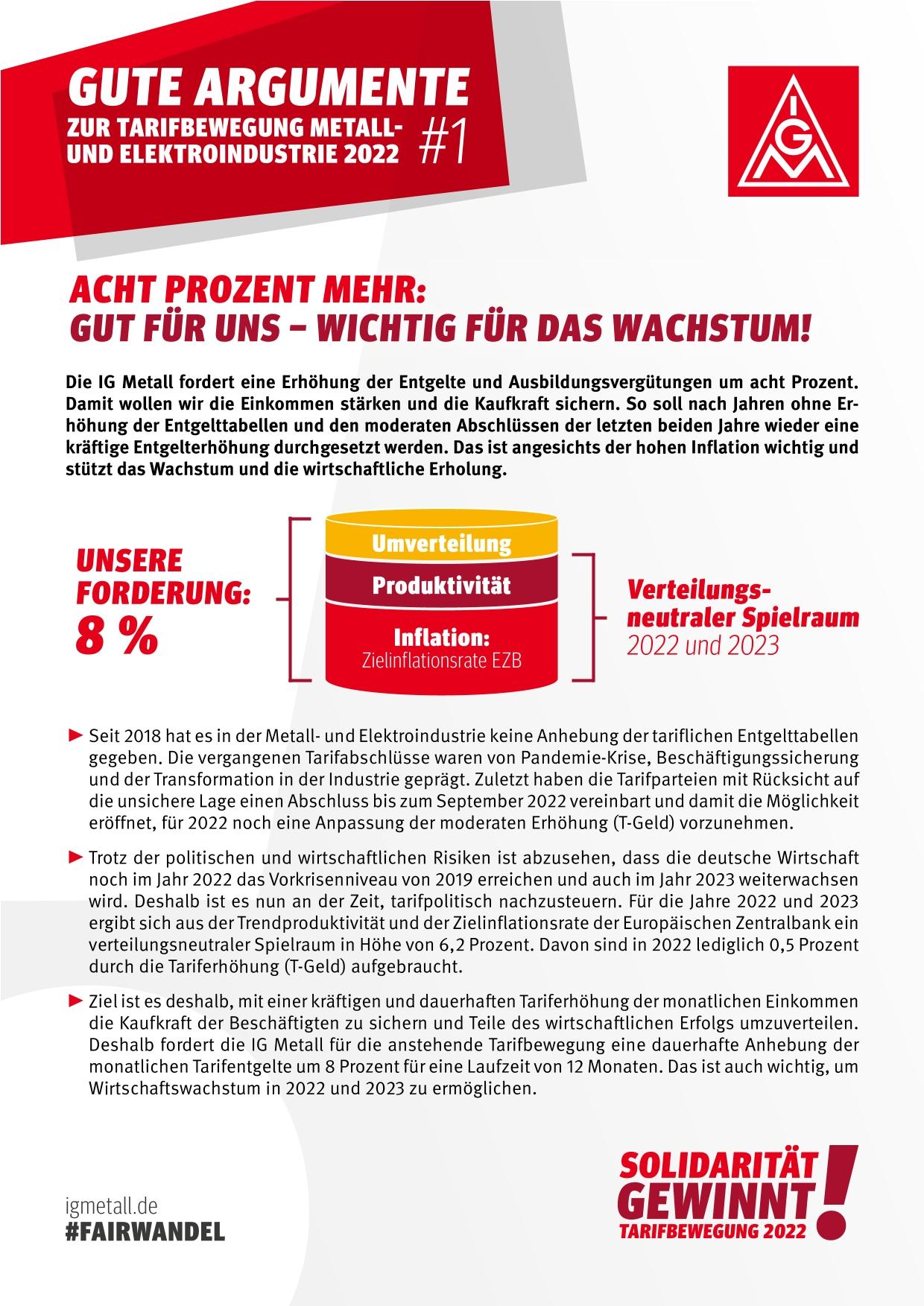 Gute Argumente zur Tarifrunde 2022 der Metall- und Elektroindustrie