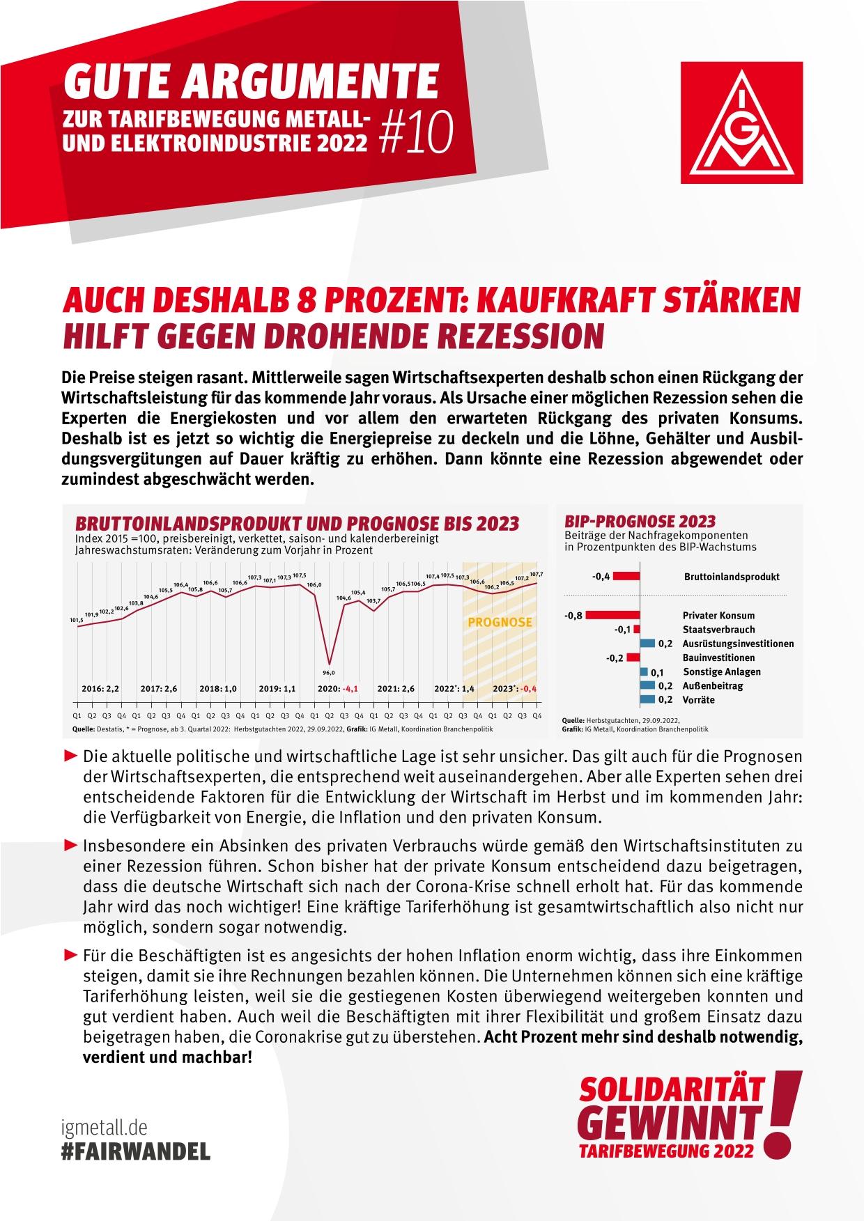 Gute Argumente Nummer 2 zur Tarifbewegung der Metall- und Elektroindustrie 2022